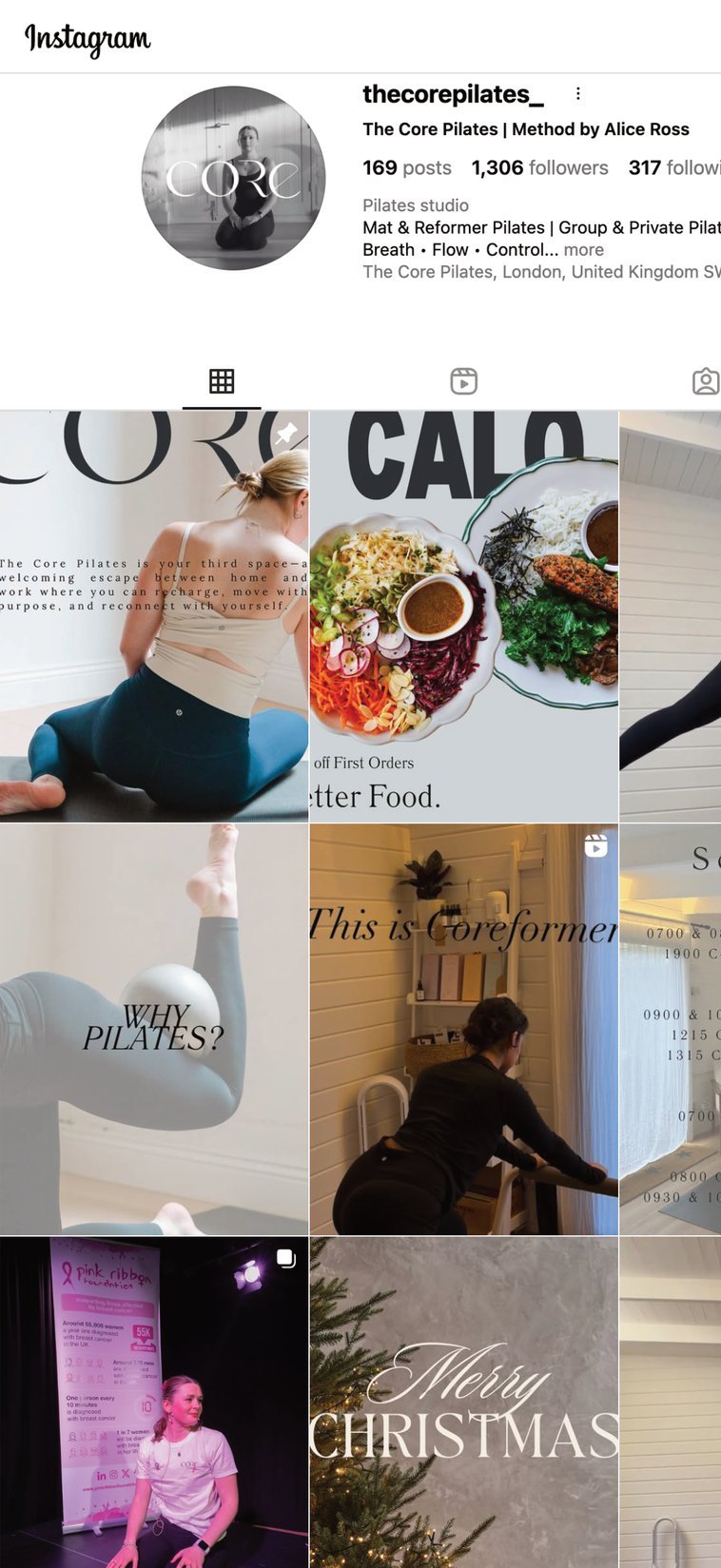 I carried the Core Pilates identity into the digital space by designing a website that mirrors the studio’s precision and a social media framework that maintains a high-end aesthetic. This cross-channel consistency ensures that every interaction, from a double-tap on Instagram to a class booking on the site, feels like a singular, premium experience